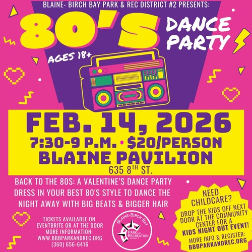 80's Dance Party for Valentines Day 18+ hosted by Blaine - Birch Bay Park and Recreation