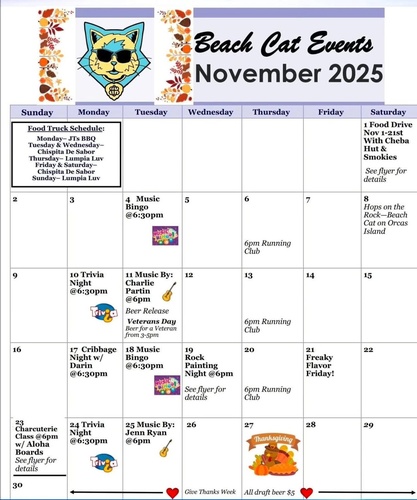 Enjoy live music by Jenn Ryan at this beautiful brewery on the ocean, Beach Cat! All ages are welcome, with daily rotating food trucks and really good beer.