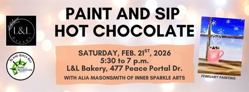Come paint a cozy winter scene with artist Alia Masonsmith at L&L Bakery! Ages 8 and older are welcome to register with a parent. One hot chocolate or equivalently priced drink is included in registration.