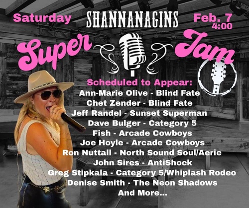 You won't want to miss the biggest party in Birch Bay,The Shannanagins Super Jam! They have a huge roster of local musicians coming out for this fun jam!