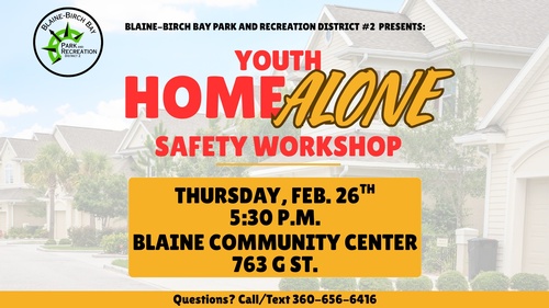 Blaine-Birch Bay Park and Recreation District #2 presents the Youth Home Alone Safety Workshop.